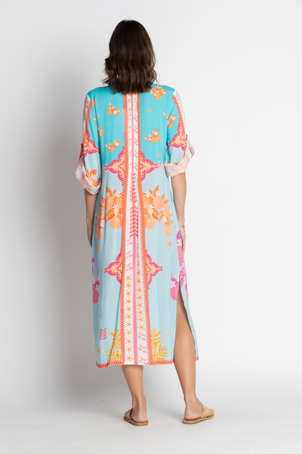 Crafted from 100% soft viscose silk lux , this lightweight midi dress drapes beautifully with a relaxed fit , perfect for everyday wear or holiday escapes.