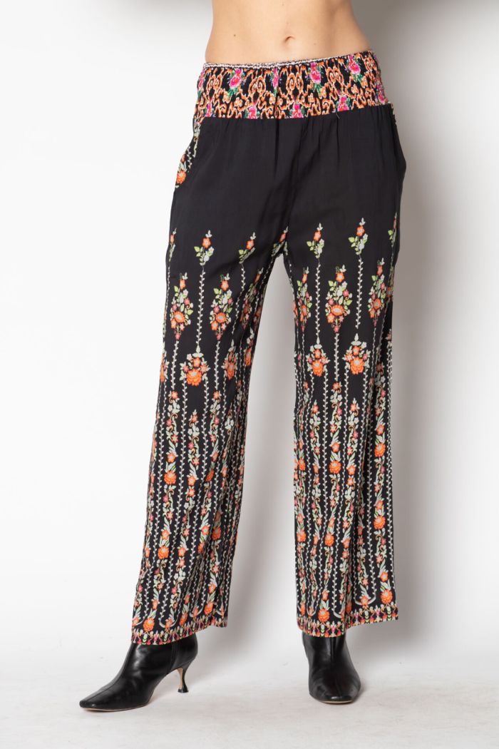 Indulge in the ultimate comfort and style with Lula Soul Melilla Pant Black. Made with super-stretchy shirred waistband and soft, breathable rayon modal fabric, it’s perfect for long flights and all-day wear. Flattering straight-cut, wide leg design pairs perfectly with a matching top or contrast with a plain shirt. Easy to wash and ready to go, it’s the perfect pant for any destination or event!