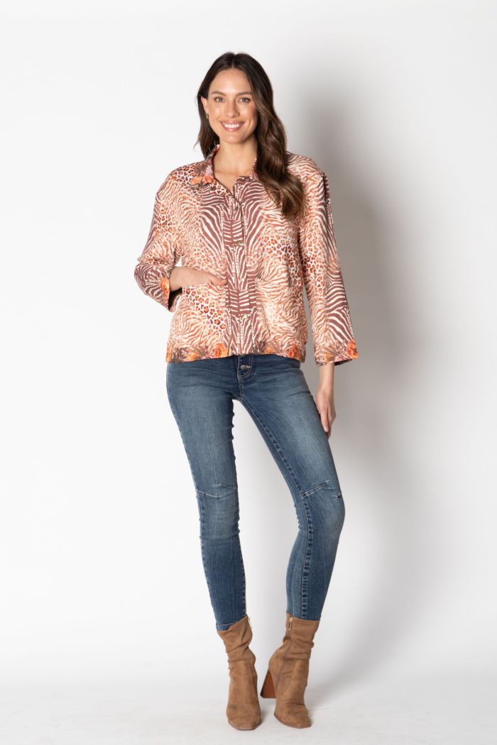 Discover the perfect combination of style and comfort with our Sabre Jacket. Made from 100% rayon twill, it features a zip front for easy wear, with elegant glass bead detailing. The elastic cuffs and waist provide a snug fit, while the floral print adds a touch of charm. Complete the look with our matching pants.