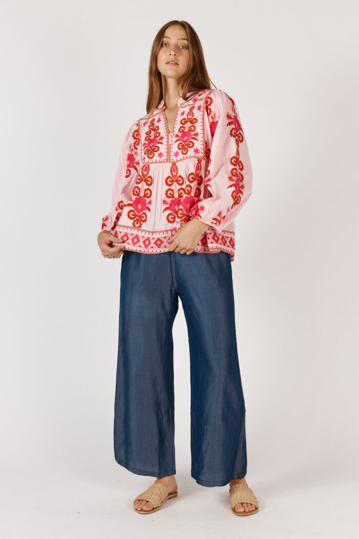 Effortlessly stylish, the RYY Carlos Shirt is crafted from 100% cotton and features intricate embroidery for a timeless boho feel. Designed in Australia, this peasant-style blouse offers a relaxed silhouette with a round neckline and v-opening, plus elasticated sleeve hems for all-day comfort. Perfect for pairing with jeans, skirts, or tailored pants, it’s a versatile wardrobe essential that blends comfort and elegance. Easy to care for with a gentle machine wash.