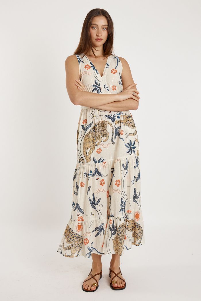The Ryy Celine Maxi Print combines effortless elegance with practical design. Crafted from 100% cotton, this sophisticated maxi dress features a striking digital print that makes a statement. The tiered skirt creates beautiful movement and dimension, while convenient side pockets add everyday functionality. Adjustable back ties ensure a customized fit, and the true-to-size cut means you’ll find your perfect silhouette with ease. An understated yet refined piece for those who appreciate quality fabrics and thoughtful details.