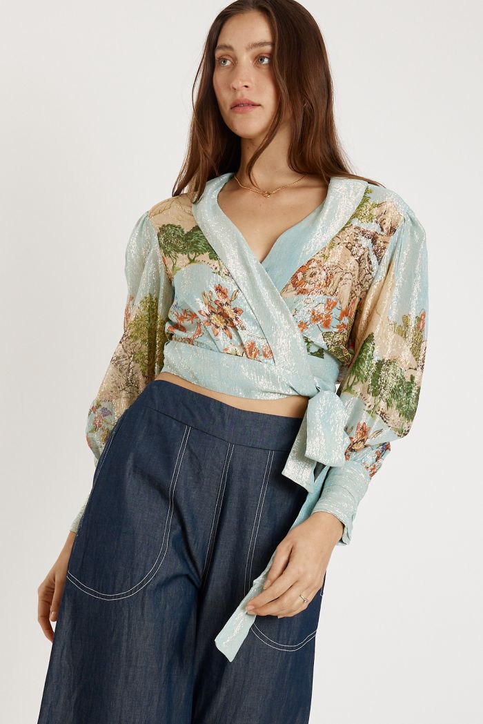 Pretty, modern, and effortlessly flattering, the RYY Montpellier Wrap Top is a standout piece for any wardrobe. Made from soft viscose, this top features a functional wrap tie that lets you adjust the fit for the perfect shape. The cropped silhouette adds a fresh, feminine touch, while the long-length sleeves balance the look with easy elegance. Designed to pair beautifully with high-waisted pants, skirts, or the matching Sunrise pieces, this wrap shirt brings a stylish, floaty feel to any outfit.