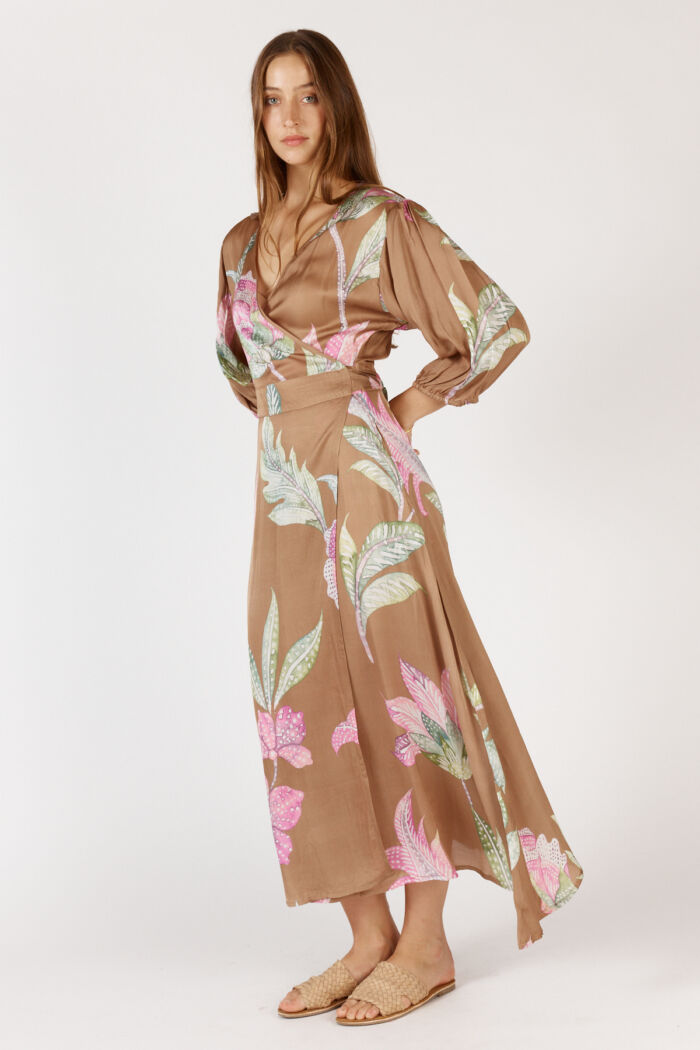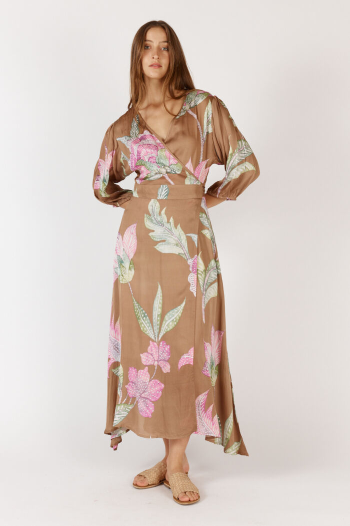 Make heads turn with the RYY Ubud Wrap Dress , a stunning true wrap style designed to flatter every figure. Crafted from luxurious 100% silky lux viscose this calf-length dress features a slight sheen for a touch of glamour, but still keeping you cool on a warm summer day. The V neckline and elbow-length sleeve with an elasticated cuff offer a breezy yet feminine look, perfect for any occasion. It has handy side pockets for practicality, and the breathable fabric ensures all-day comfort.